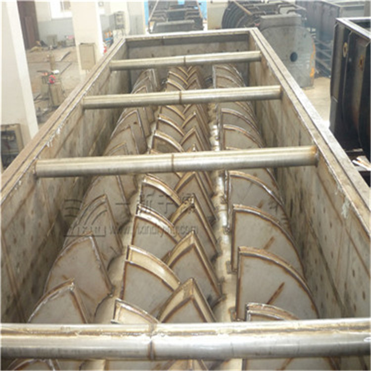 由于槳葉結(jié)構(gòu)特殊,物料在干燥過(guò)程中交替受到擠壓和松馳,強(qiáng)化了干燥。另外,當(dāng)兩葉片反向交錯(cuò)旋轉(zhuǎn)時(shí),具有自清潔作用,因此對(duì)粘性和膏狀物料也能應(yīng)用。