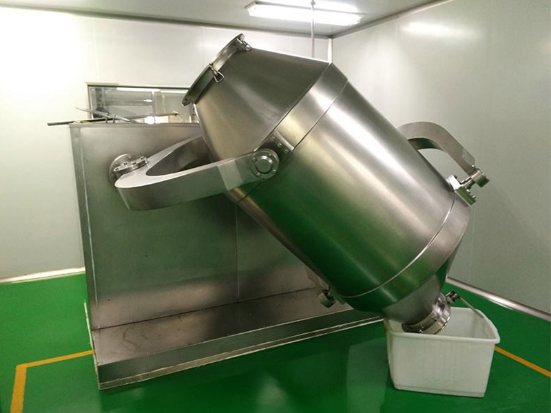該機(jī)在運(yùn)行中,由于混合桶體具有多方向運(yùn)轉(zhuǎn)動作,使各種物料在混合過程中加速了流動和擴(kuò)散作用,同時避免了一般混合機(jī)因離心力作用所產(chǎn)生的物料比重偏析和積聚現(xiàn)象,混合無死角,能有效確?;旌衔锪系腲佳品質(zhì)。