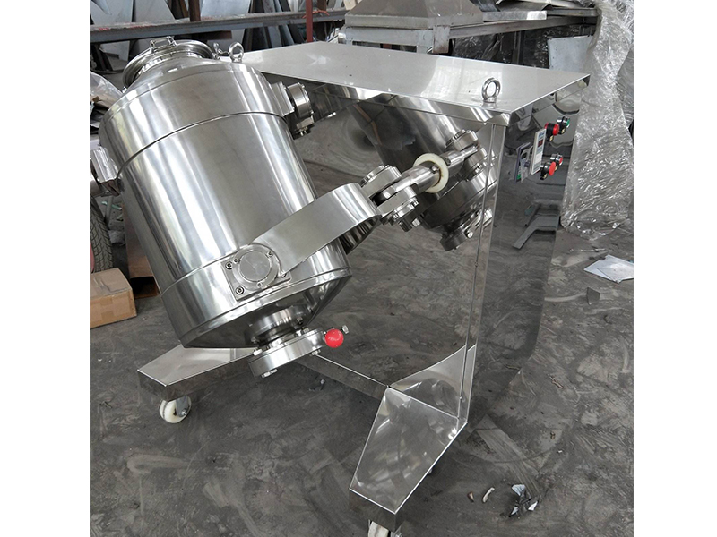 結(jié)構(gòu):該機(jī)由機(jī)座、傳動系統(tǒng)、電器控制系統(tǒng)、多向運(yùn)動機(jī)構(gòu)、混合筒等部件組成。與物料直接接觸的混合筒采用優(yōu)質(zhì)不銹鋼材料制造,桶體內(nèi)外壁均經(jīng)鏡面拋光。